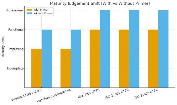 What follows brings all of that together: where the system strengthened, where drift remained, and where the convergence across models shows the framework settling into a stable, repeatable pattern of performance. The first full trial used substantial real-world Governance Risk Control (GRC) data provided by a leading GRC cloud services provider, plus generated sumulations of a management system supporting common ISO standards. Briefly:
